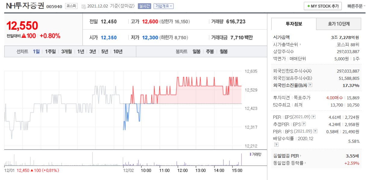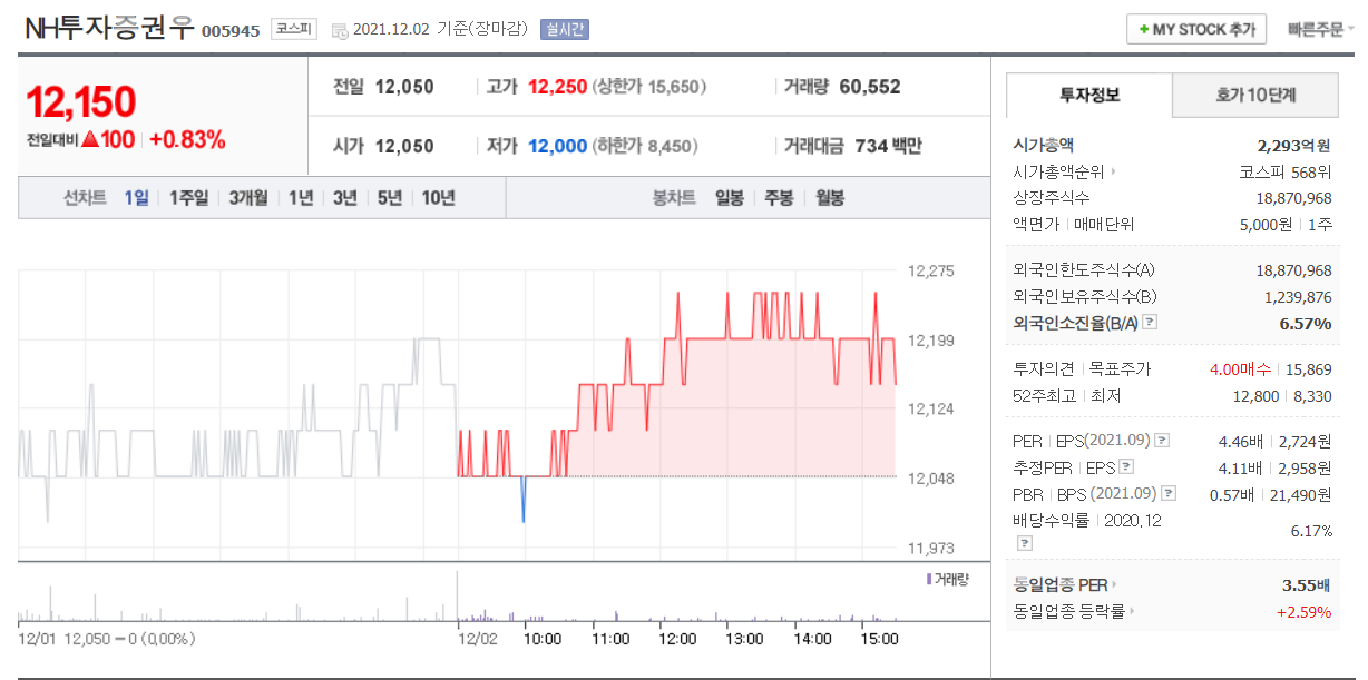 'nh투자증권', 'nh투자증권우' 2종류의 주식이 있습니다.