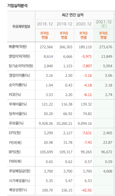 배당성향이 매해 100%를 넘고 있으며, 심지어 작년엔 영업이익이 적자였는데요