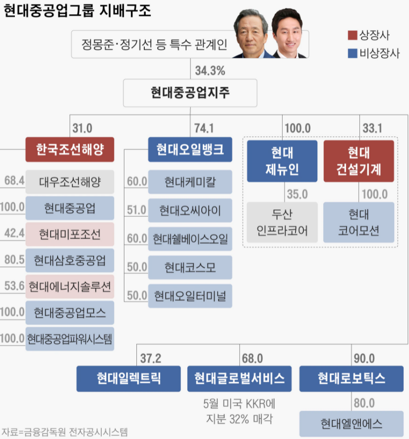 여러분들이 잘아시는 현대중공업, 현대미포조선, 현대오일뱅크, 현대두산인프라코어 등이