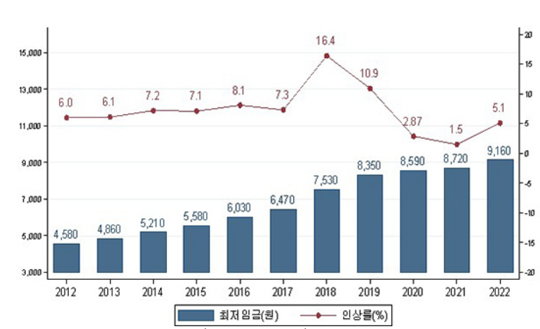 2022년 최저시급은 9,160원으로 작년대비 440원(5.1%) 인상되었습니다.